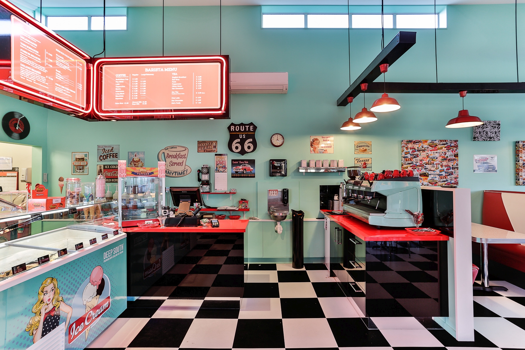 Gloss acrylic gives retro cafe extra shine